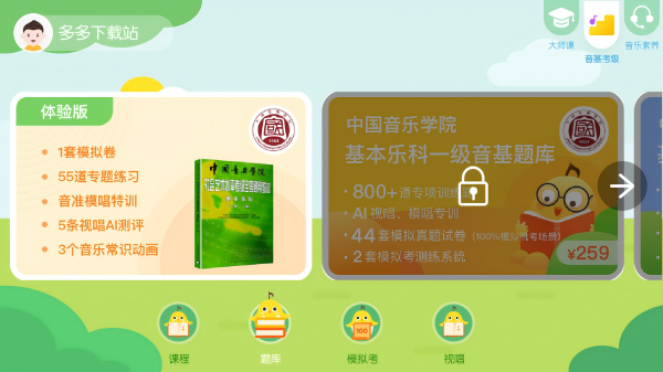 2、中国音乐学院专属视唱课程,音准模唱练习,AI视唱条特训。