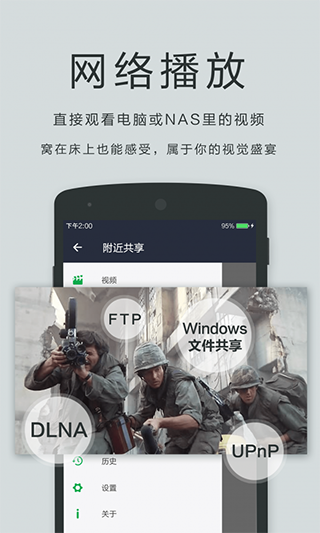 - 支持直接在线播放电脑文件(节省手机存储空间)
