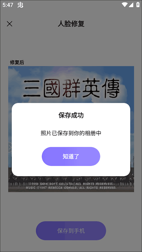 1、打开下载好的应用,在主页界面选择并点击“人脸修复”的按钮选项;