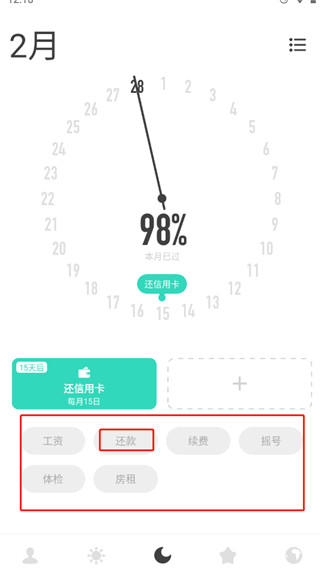 1、打开在本站下载的时光提醒app,进入首页,选择你想要提醒的事项,如还款;