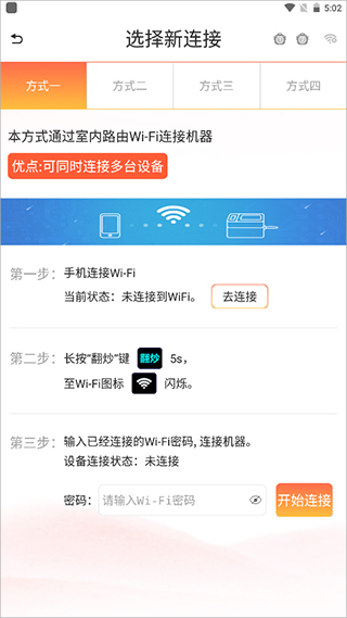1、用户在本站下载爸爸小炒app,然后安装好应用后打开登录,接着就可以在首页右上角可以查看到连接状态,如下图灰色就是没有连接