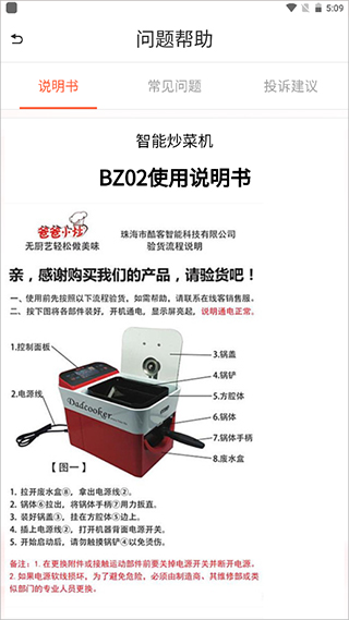 用户在爸爸小炒app的个人中心页面中可直接查看说明书的,用不了下载的,其操作方式如下: