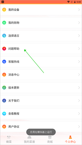 1、首先进入应用个人中心页面中点击【问题帮助】