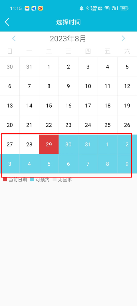 4,点击选择之后,就是选择科室的就诊时间,最后就是点击日历上的时间进入然后点击你想预约的时间,直接预约即可。