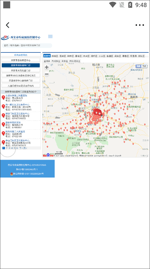 2、然后,在这里就能看到各个医疗机构的名称、地址和分布了;