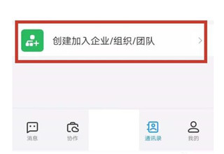 2、点击创建加入企业/组织/团队。