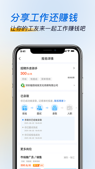 平台致力于帮助蓝领求职者找到好工作,公司已与多家大型企业签署职位招聘协议,海量大厂职位等你来。