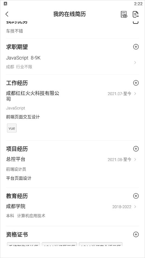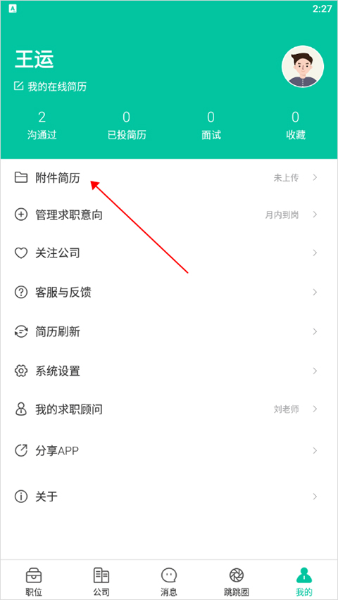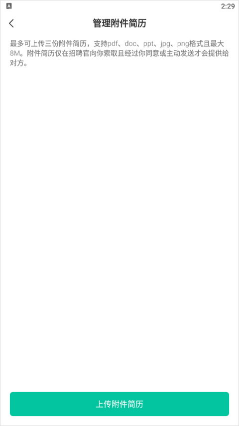 4、用户还可以在【我的】页面中通过点击【附件简历】备份多张不同的简历