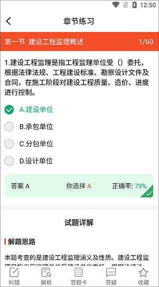 3、现在就可以开始做题了,在选择好答案后,软件会分析这道题,及时给出正确答案。
