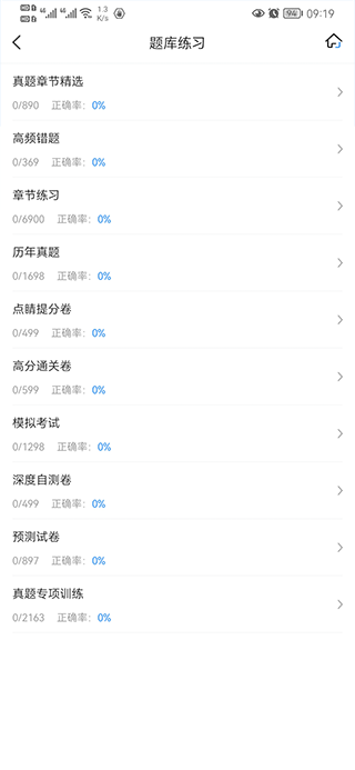 四、用户还可以通过题库练习进行学习,里面包含了章节精选、高频错题、模拟考试等各种题型,能够更好的帮助你拿高分