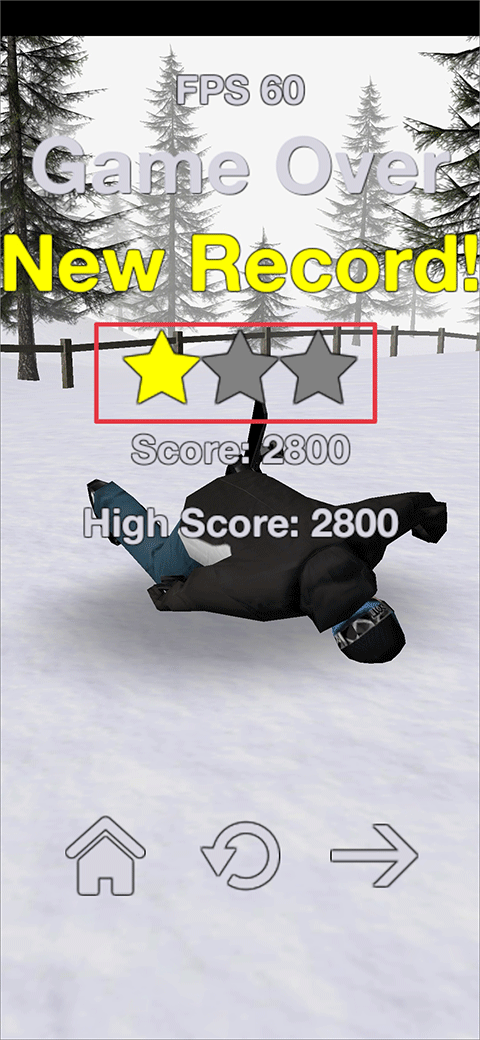 5、然后控制角色不断完成滑行,躲避操作,并达到目标分数后即可过关,到达过关分数后,玩家还可以继续操作,争取完成三星目标