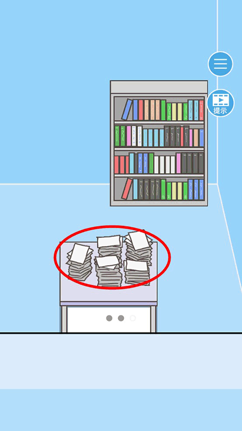 在第三个场景把文件都移开就可以看见一把钥匙和一个开关,但不能用钥匙去开门,因为我们开始游戏的时候是不知道上司在哪的,说不定上司就躲在门口等我们开门。