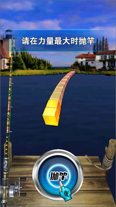 5、长按卷线轮拉紧鱼线至紧绷获得怒气,怒气可以使你更加容易钓到鱼。