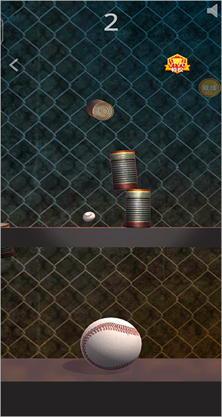 3、又或者抛球击罐玩法,给你一些棒球,滑动屏幕将手中的棒球发射出去击倒远处的所有罐子;