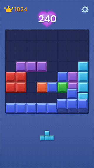 每一步的放置都将获得分数,棋盘没有放块的空间时游戏结束。