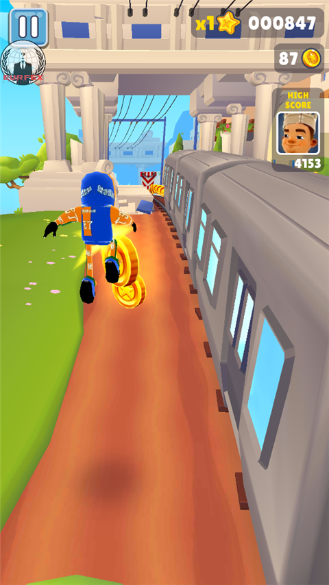3、动感的背景音乐与快节奏的跑酷玩法,城市的美景在飞速的后退,我们在疯狂的向前奔跑,争取夺得更高分数吧。