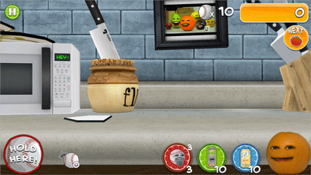 烦人的橘子游戏是一款卡通拟人风格制作的玩法非常魔性,模拟人类表情有趣的休闲益智手游,操作简单易上手,延续了动漫中的怪物的角色形象和场景设计,借鉴了打棒球的游戏玩法,玩家需要抓住时机,将各种表情丑陋甚至看起来贱兮兮的水果一棒子打到指定的位置来闯关,超级魔性。