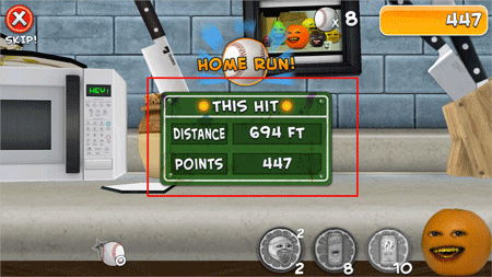 3、击中物品后可以看到物品飞跃的距离和得分。