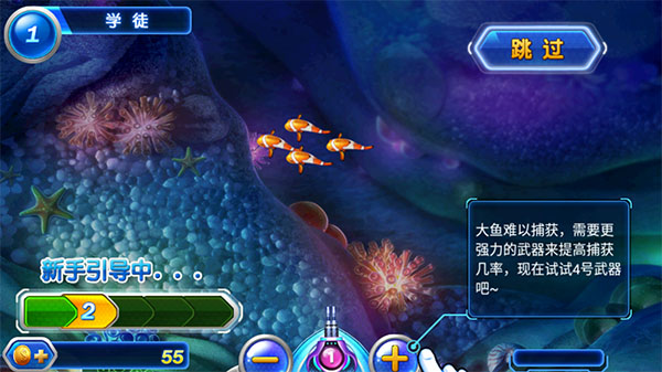 4、鱼越大越难捕捉,这个时候就需要调整炮台的等级