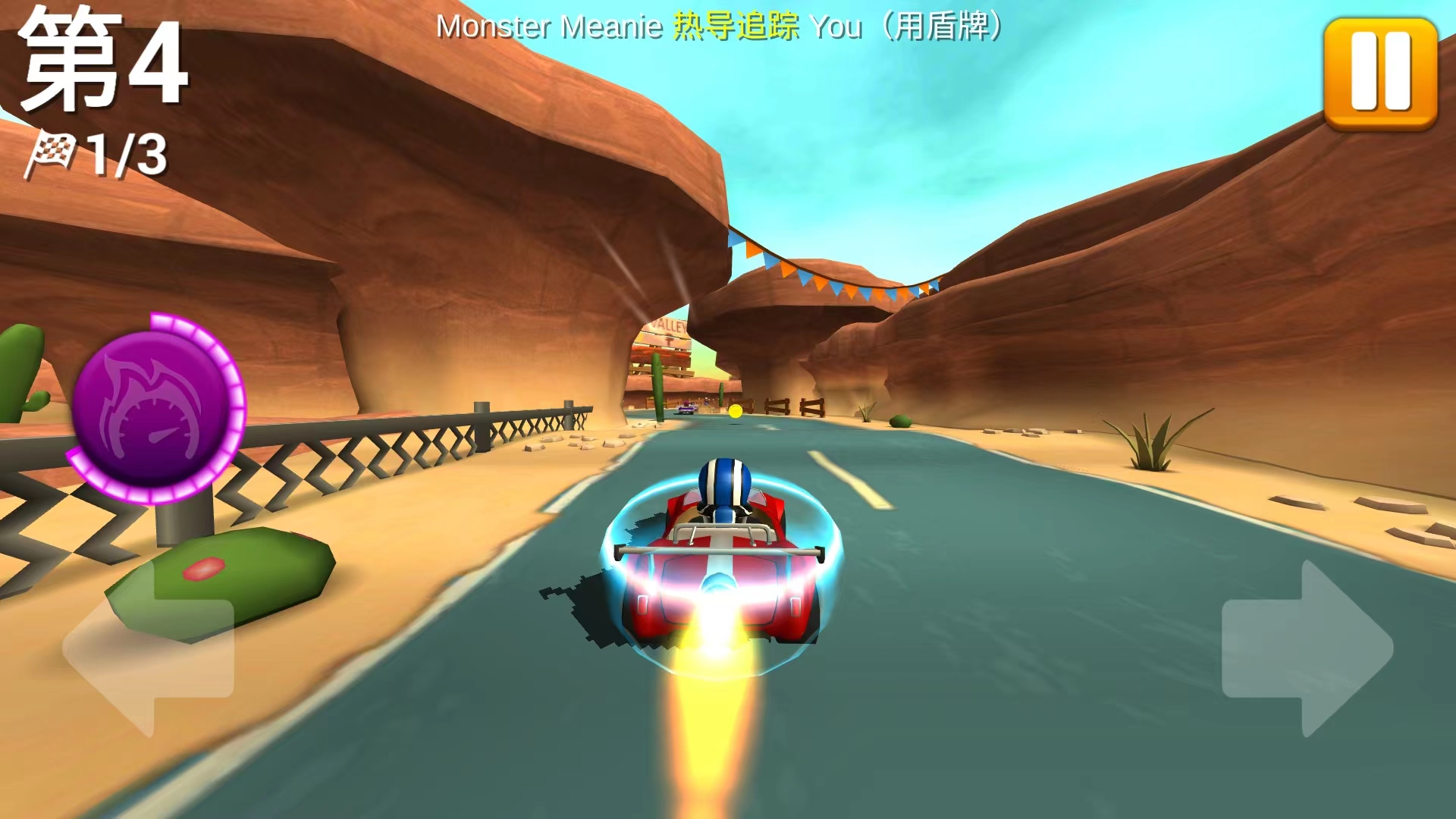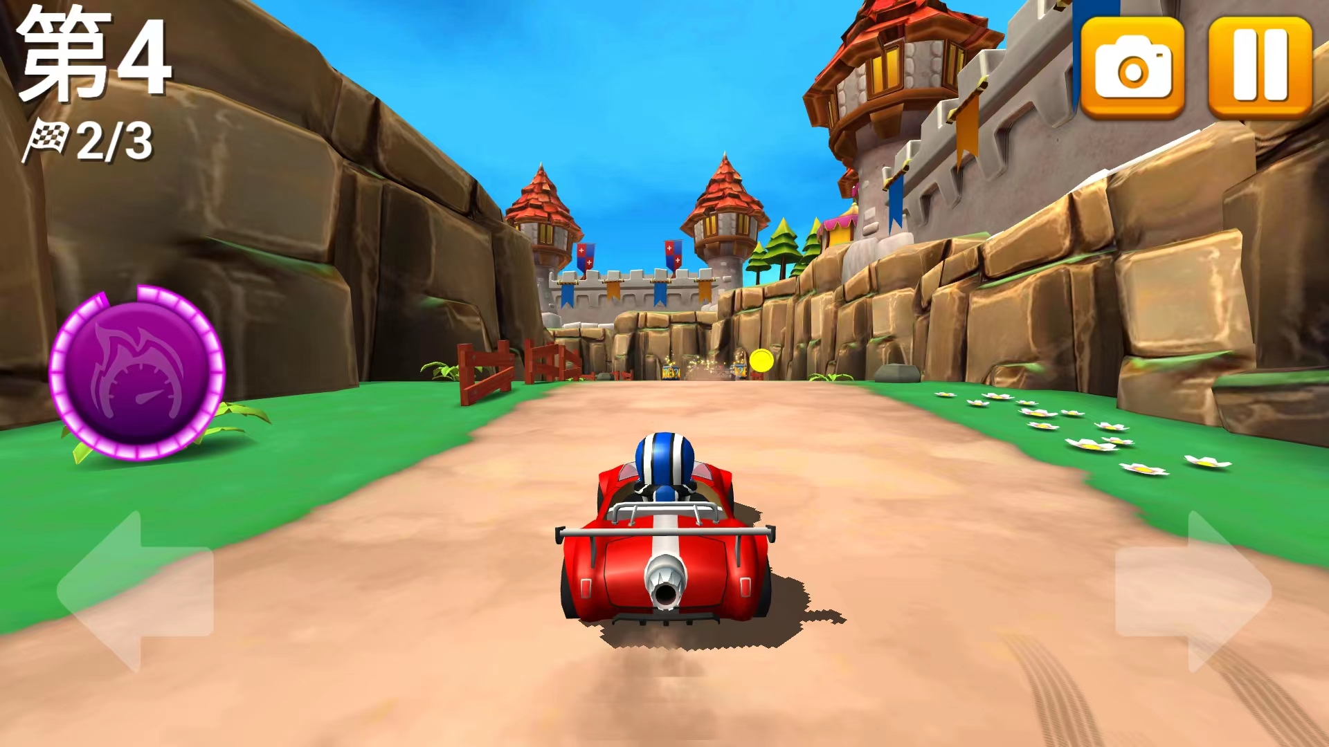 4、进入比赛界面了,我们可以通过下方左右箭头控制赛车的方向,