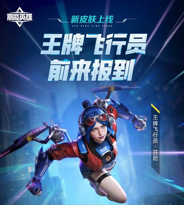 此外,王牌飞行员-芬尼皮肤正式上线!英姿飒爽,壮志豪情,护航每位高能玩家的场上激战!