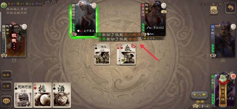 4、触发条件是红杀或者决斗仅限指定一个目标的情况下,如果你的杀同时攻击了二个目标就不会触发技能合击,同时决斗二个目前手杀我还没见过,同时攻击二个目标最常见的就是方天画戟和某些武将技能,一般情况都是攻击一个目标,所以说触发还是很稳定的。