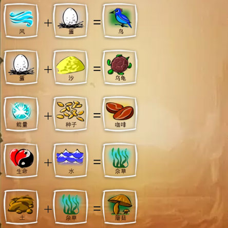 最让我觉得有意思的是它的合成表,里面包含了各种元素的组合方式,像是土加火变成岩浆,风加土变成尘土等等。这些组合不仅考验想象力,还需要一些科学知识,比如化学反应和物理原理。游戏还加入了谜题模式和生存任务,让玩法更加多样化。