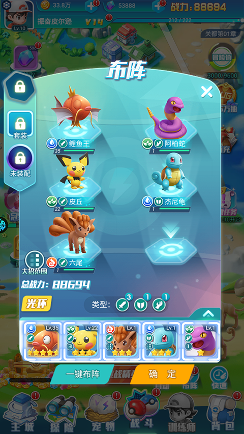 2、阵容自由:玩家可以自由搭配精灵阵容,利用属性相克原理,制定出克制对手的完美阵容。