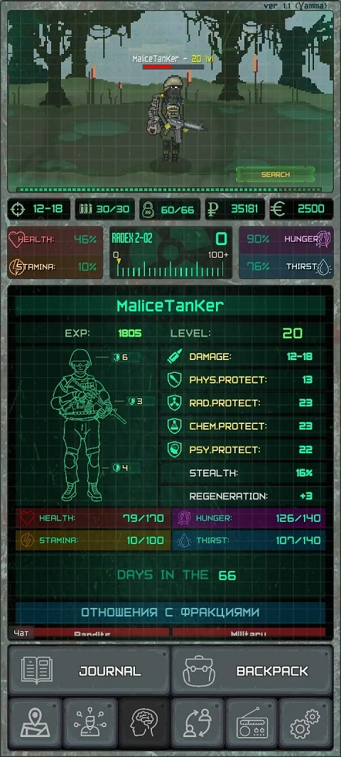 袖珍区手游是一款末日题材的冒险生存类游戏,英文名叫Pocket Zone,别名也叫口袋地带,由Pocket Survivor、Pocket Survivor 2、Pocket Survivor: Expansion开发人员打造的新作!受《辐射》和《潜行者》系列启发,在这里玩家可创建不同的角色,每一位职业都有各自对应的属性与技能,角色会影响你的游戏过程,所以明智地选择。