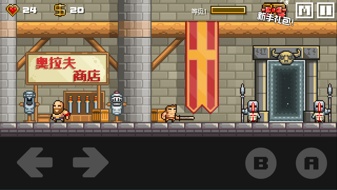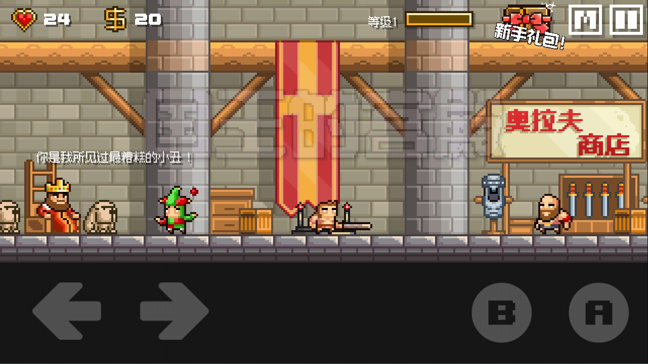 游戏的操作不是很难,在游戏的屏幕左下方有两个方向键控制左右。B键是攻击键,A键是起跳键,长按是下跳。大家注意不要被怪伤到。