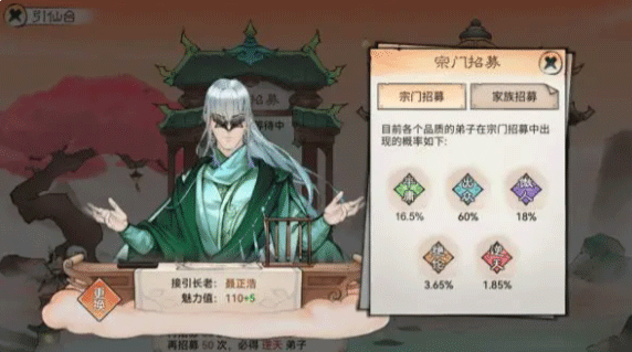 魅力值高的弟子派去当【引仙台】招募长老。招【逆天弟子】【绝伦】弟子的概率相对较高,真香!