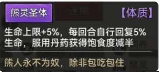 ④体质类:金/木/水/火/土五行灵体、熊灵体等