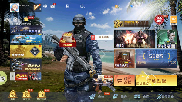 1、首先我们进入游戏中,游戏有多种模式可以进入,比如:猎场、终极变异等等,小编进入的是“快速匹配”;