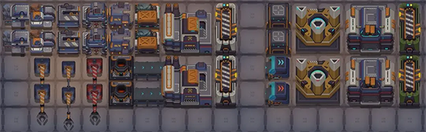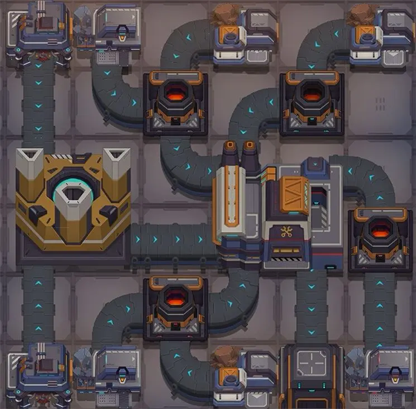 最高二级建筑(两个油厂一级就够,下图是两个模块中心对称拼起来的,拆开用也可以,缺点是混料供应有可能在摆图后卡料,手动一键收集几次后就可以疏通。产值:0.4636,产值教学在本帖第三部分):