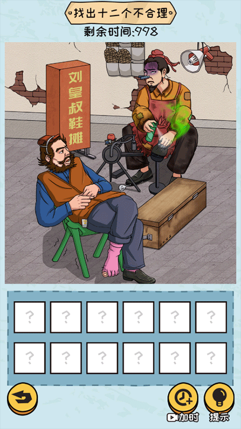4、仔细观察,找出十二个不合理的物品,但需要注意的是有时间限制,并且如果玩家点错了还会减少时间;