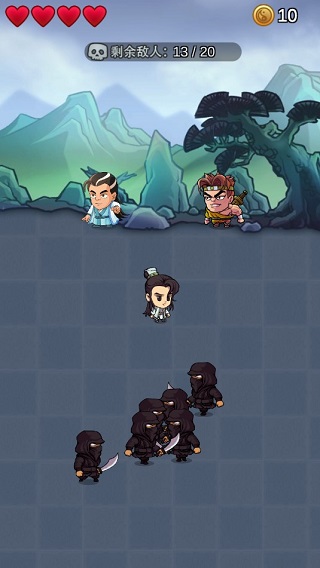 在独具魅力的地图关卡之中操控少年林云,与江湖上的各门各派进行战斗,具体的操作非常简单,在竖屏界面复古街机操作中,一个走位,一把飞刀,轻松清除各路敌人。