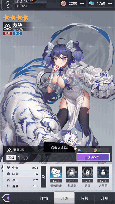 7、接下来,在角色的训练界面找到并点击“训练五次”的按钮选项;