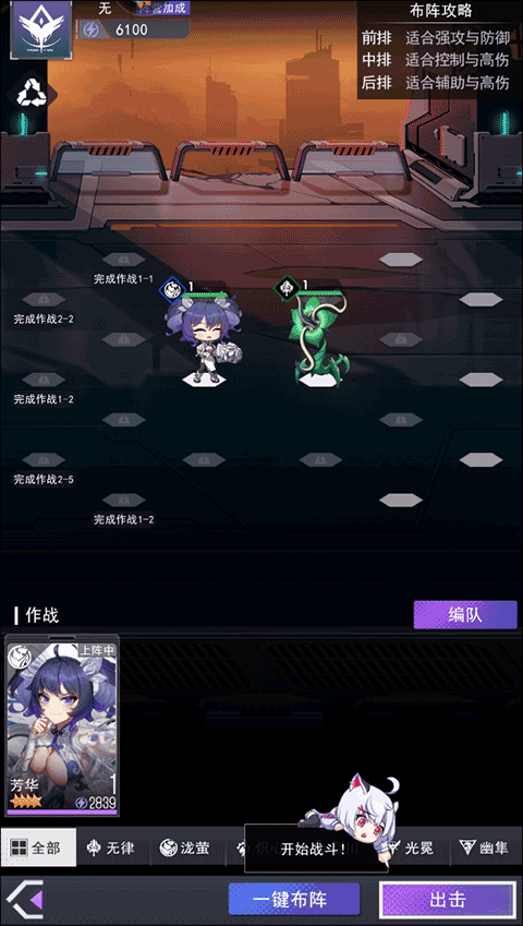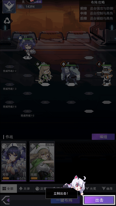 3、这里需要玩家点击出击按钮来让英雄少女奔赴战场;