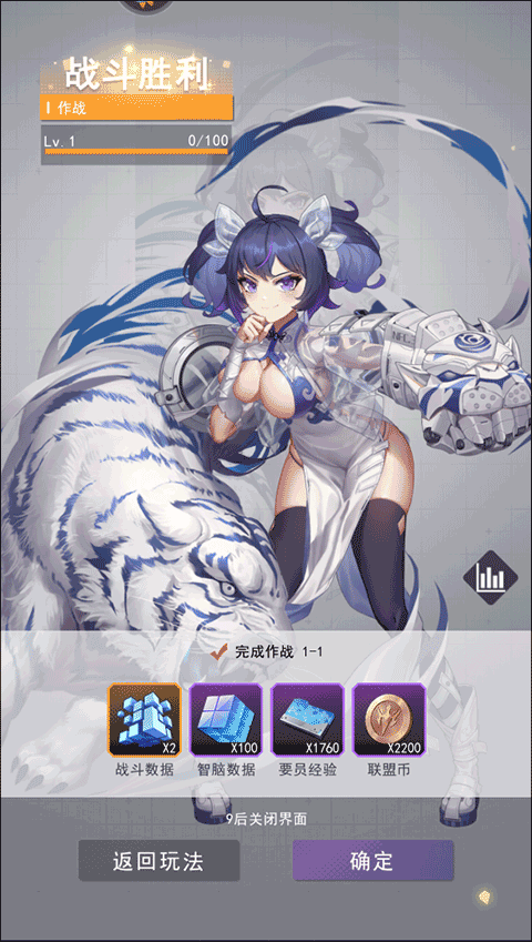 4、接着,在这里点击确定来获得战斗胜利的奖励吧;