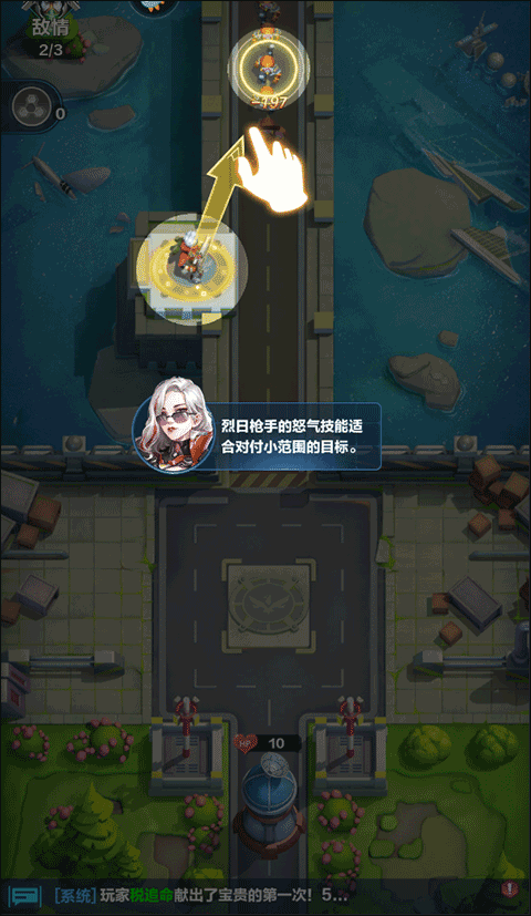 9、在战斗过程中需要注意角色的怒气值积攒,积累了足够多的怒气值后便可以如图中一样按住英雄往敌人方向规划好进攻方向;