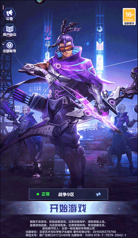 1、运行游戏后,在界面选择好区服之后找到并点击“开始游戏”选项;
