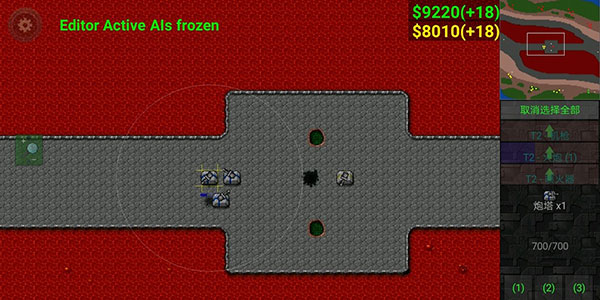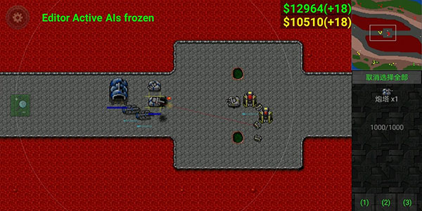 使用激光坦克(图片情况是假的),因沙盒模式原因很难模拟正常情况,因为钱不够的原因四号要出激光坦克在激光防御上有极大欠缺,三号只需火炮集火激光坦克,并用建造修塔,而四号的激光坦克难有输出机会大概率白给,为减小损失回收二级陆工,三号顺利拿下中。以上为我遇到的对抗火炮的方法,均以失败告终,目前尚未遇到能对付的方法(好像只有我一个人用,那就叫雪风式火炮流好了)