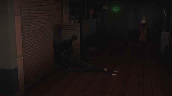这时候我们在学籍室,老李会自动刷到附近,蹲下不动等他走了以后开灯拿物品,这时候就拿到了之后我们时时刻刻要用到的打火器了,里面的那扇门房间是总务室,之后有用