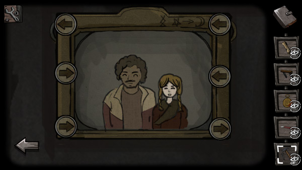 7、墙上有一个GUO跟女孩的合照,相框周围有箭头,那么这些箭头都指向哪里呢。我们可以看到桌子上有一本日历,我们走到外观察路牌可以发现绿色为右,红色为左。把日历从一月翻到最后可以发现,月份颜色为红红绿绿绿红即为左左右右右左。然后按照日历上面图案的顺序依次把箭头按照左左右右右左的顺序排好。然后把斗篷给女孩,换取心脏。