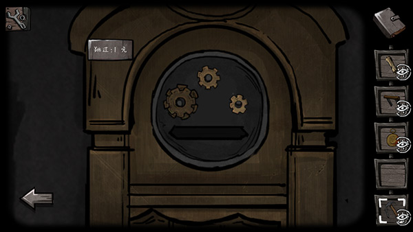 14、拿走桌子上的怀表零件,装到怀表上,怀表变成了九点十五。铁门密码锁旁边的图案与怀表后面一样,输入怀表时间九点四十五:2145。