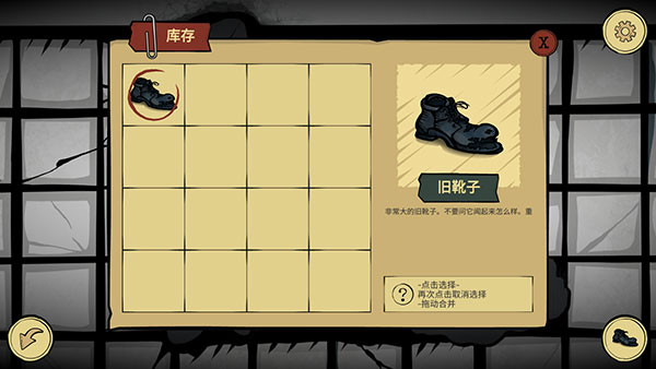 6、用旧靴子将左上角的灰抹去,点击白色砖块可以移动位置,将下面的碎砖块移动至左上角破碎处,得到【碎砖块】;