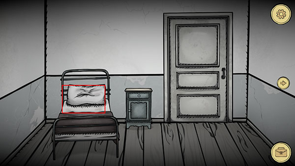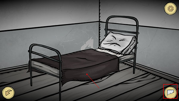 2、醒来时发现到了一个房间,可以先探索一番,发现出不去,我们点击床铺;