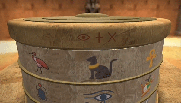 1、转动箱子,将上一个关卡得到的黑色宝石放入到凹槽里面。