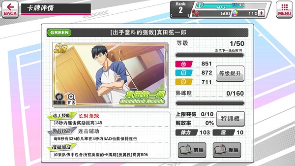 特训板的解放除了消耗特训道具,还对于卡牌等级或熟练度有一定的要求,熟练度可以通过参加比赛进行提升。让王子们多多地去赛场上磨练球技吧!
