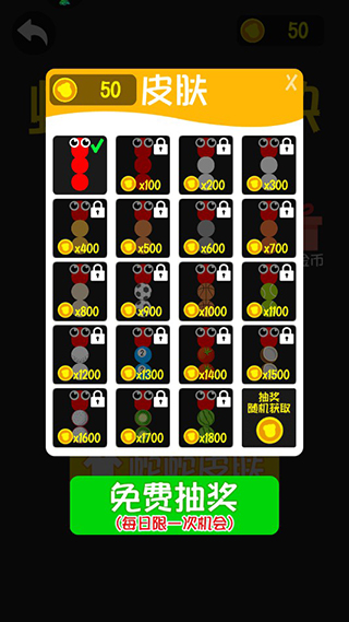 5、返回到游戏开始的界面,这里支持更改蛇蛇的皮肤,有足够的金币才可以修改皮肤;